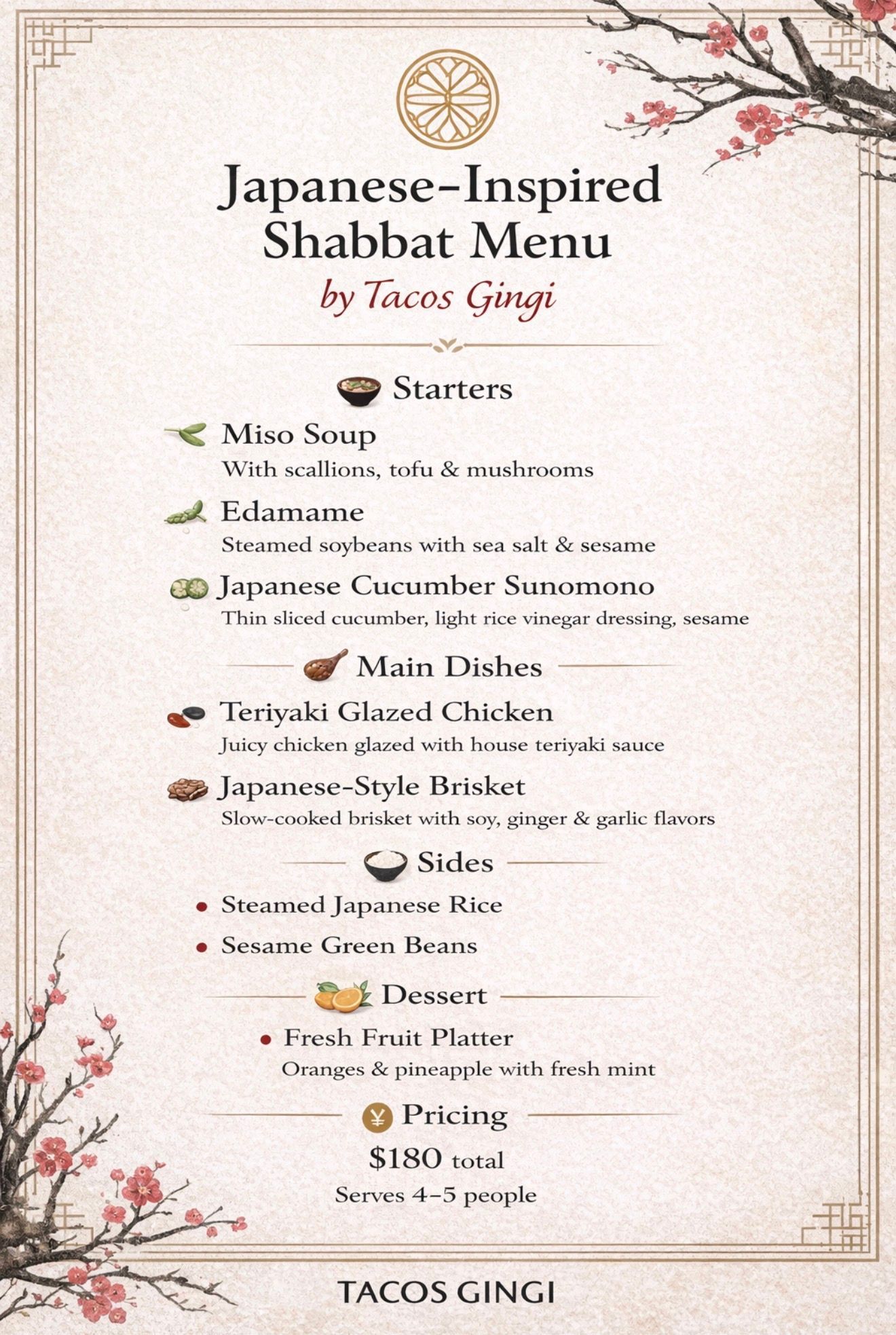"We have a passion for making homemade, authentic kosher Mexican food long before starting Tacos Gingi. In fact, we are from Mexico City and earned culinary degrees before bringing our skills to the North Shore of Chicago." Ricky and Aliza.